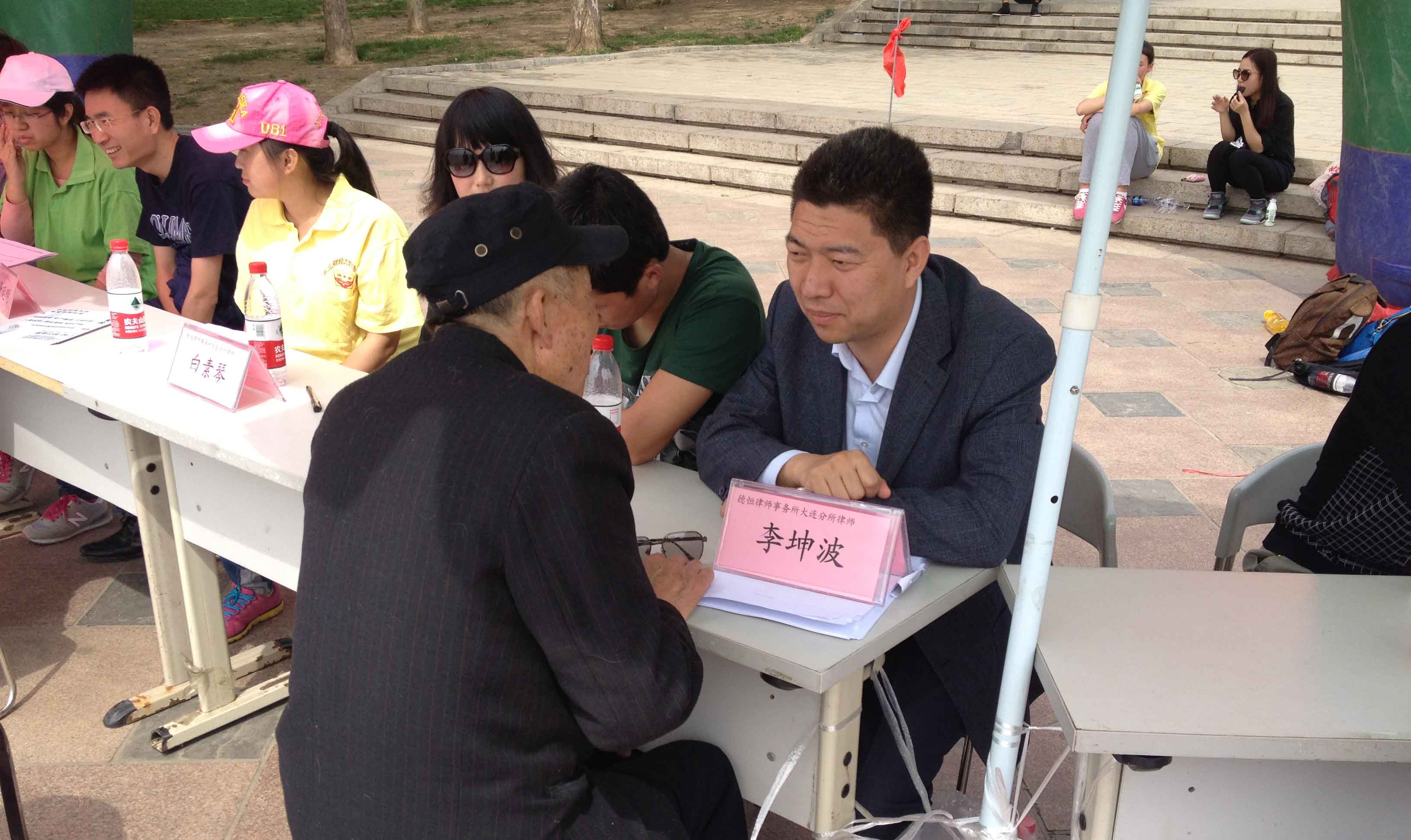 2014年5月17日,德恒大连分所与东北财经大学法学院在星海公园西门广场联合举办了大型义务法律咨询活动。本次活动以“弘扬社会法治精神,维护公民合法权益”为主题,吸引了大批市民前来咨询。德恒李坤波律师、白素琴律师以及东北财经大学法学院院长赵大利、副院长於向平、王岩等9位老师及法学院40余名学生参加了本次活动。
